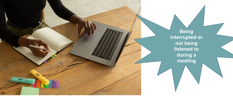 Being interrupted or not being listened to during a meeting. A good example of non-inclusive behaviour is not allowing those from under-represented groups the chance to be heard or share ideas during meetings.