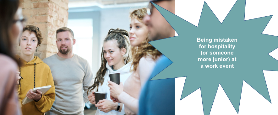 This is a common microaggression where people are mistaken for hospitality or a more junior position than they are within the workplace.
