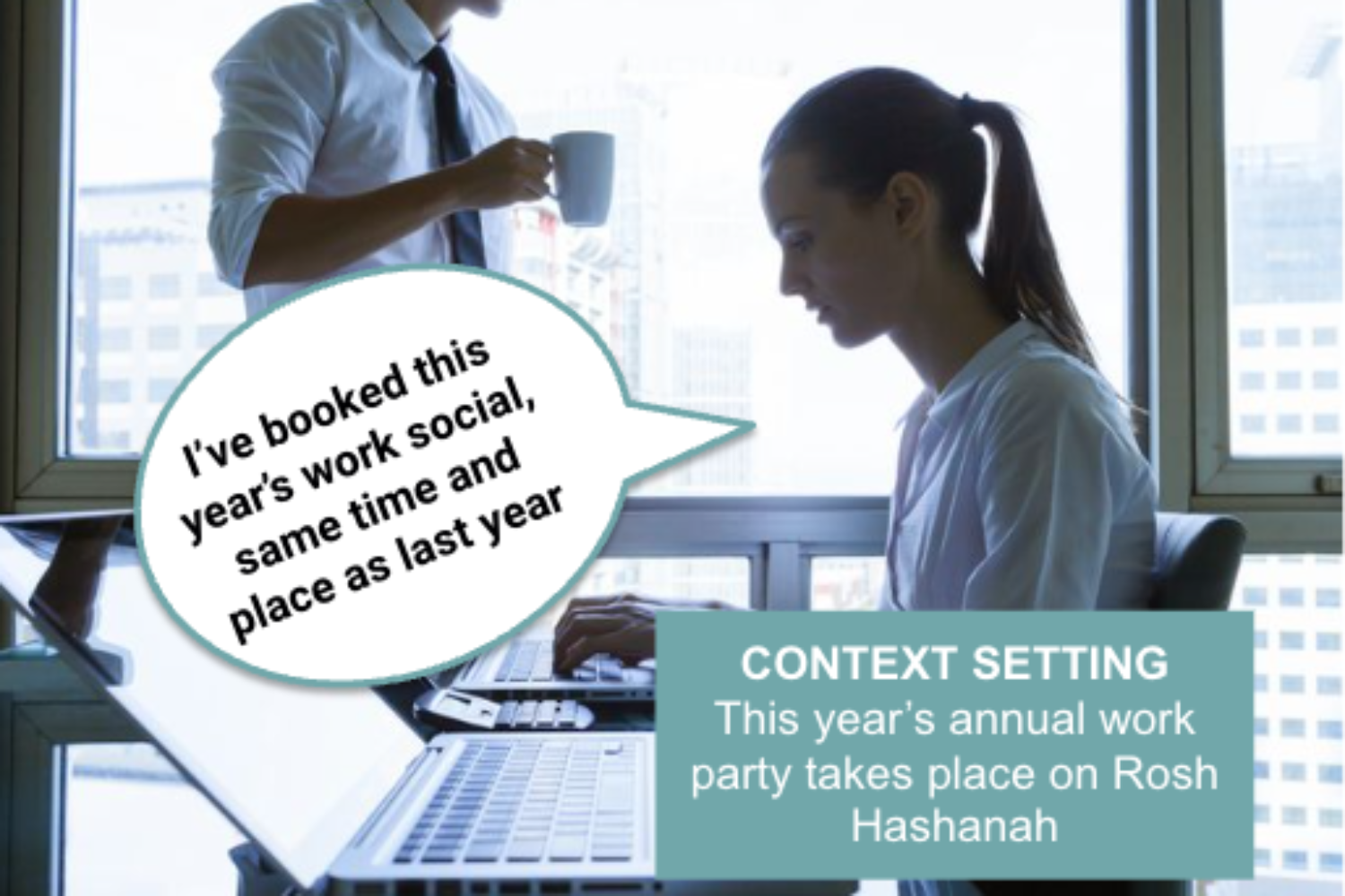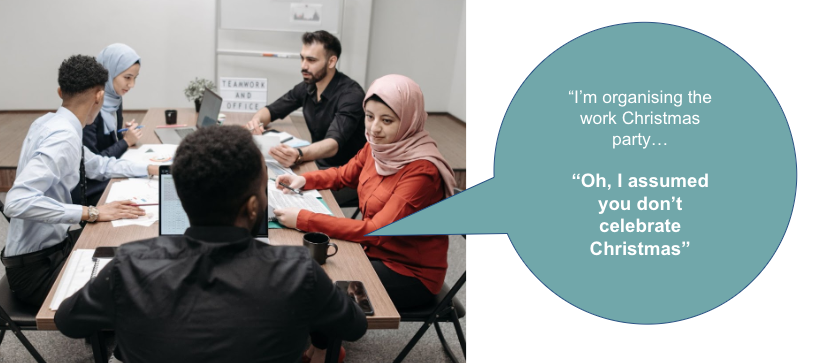 Booking work parties, meetings or other events at venues with non-inclusive menus or just serving alcohol or on religious holidays can exclude members of the team.